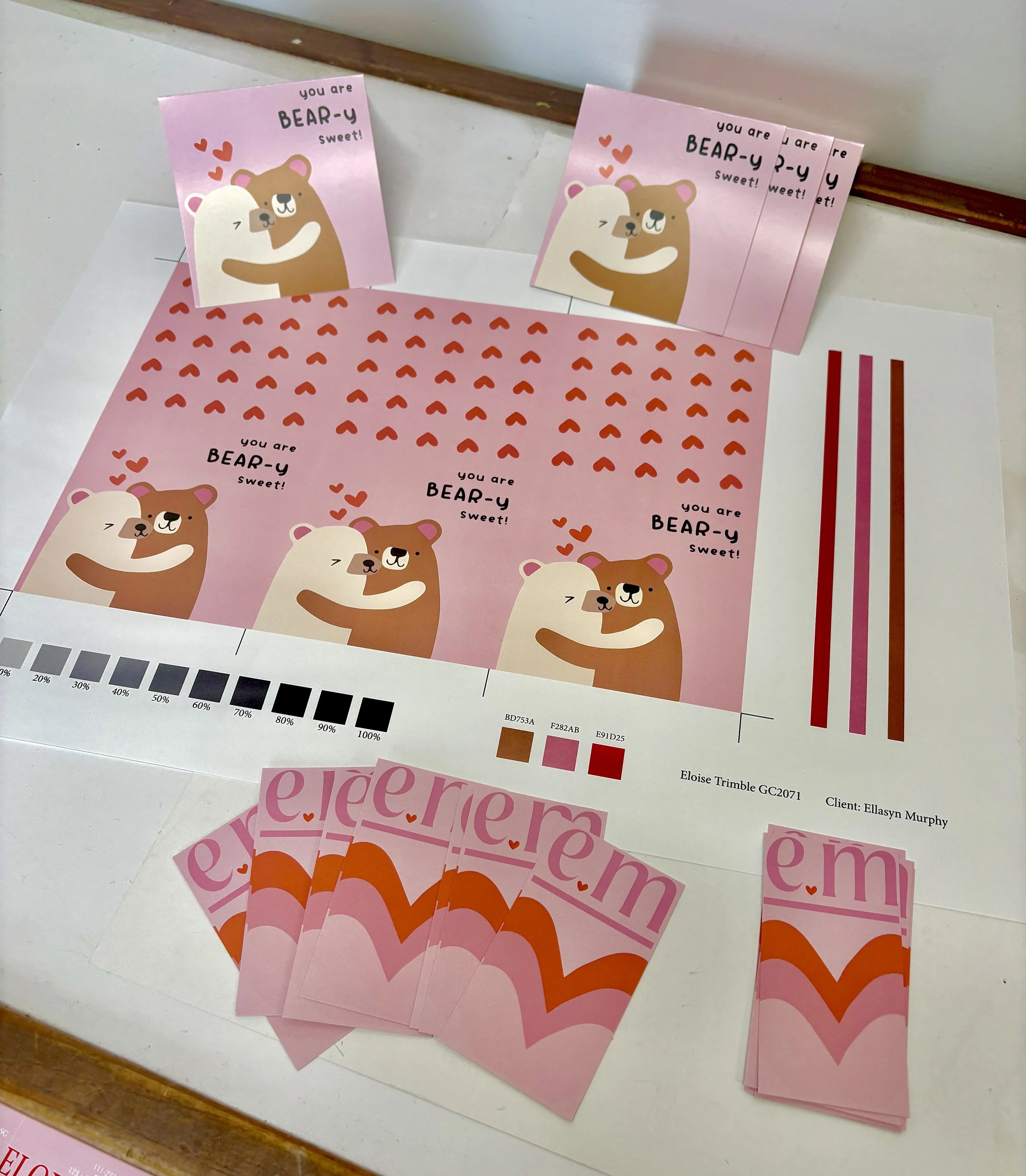 For this class project, I collaborated with a classmate in a dual designer–client role. I designed a custom greeting card and business card tailored to my partner’s personal preferences and functional needs. Throughout the process, we held multiple feedback sessions in which I presented design concepts, gathered input, and refined the work based on their responses. The final designs we then printed, cut, and assembled, resulting in polished, tangible pieces. This project highlighted the importance of clear communication, iterative design, and client collaboration in creating work that is both functional and meaningful.