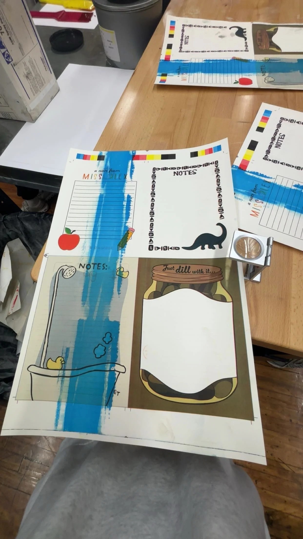 This project focused on designing and producing custom notepads using an offset lithography printer. Through this process, I gained hands-on experience preparing files for offset printing, running the press, and understanding registration and ink consistency. After printing, each notepad was hand-collated, sealed, and bound, reinforcing the relationship between design decisions and physical production. The project highlights my growing proficiency in traditional print methods and finishing techniques.